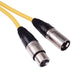 Yellow male to female XLR patch lead featuring 3 pin metal connectors and a 2-core screened cable. The lead is suitable for audio and microphone connections.